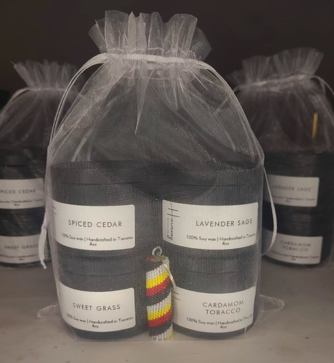 Together, flyingstar.creations and i created the ultimate gift featuring a beautifully hand beaded peyote stitch Medicine Wheel key chain and our popular 100% soy wax 4 Medicine candles!